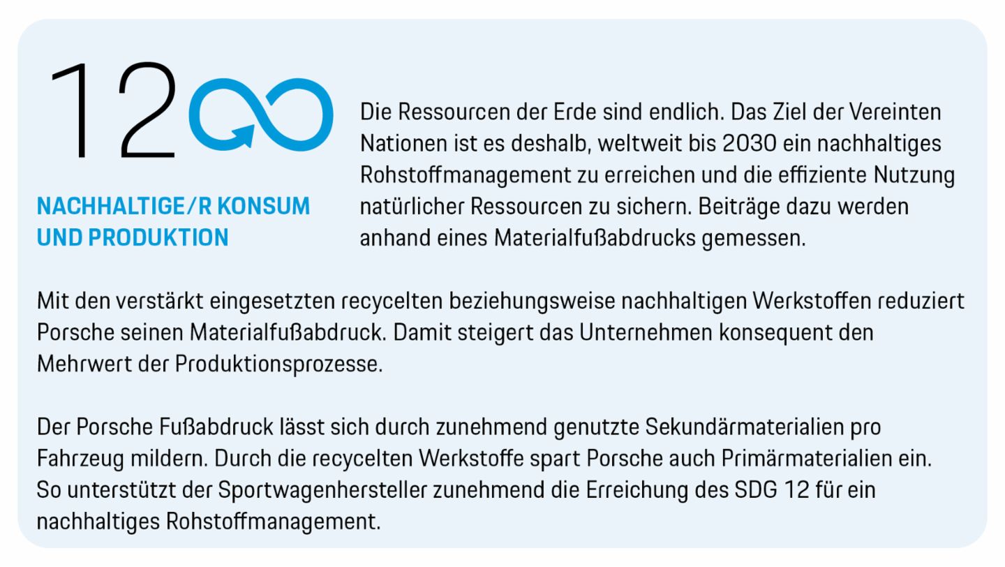 Das Unternehmen hat ein umfangreiches Dekarbonisierungsprogramm gestartet. Ab dem Jahr 2030 will Porsche über die gesamte Wertschöpfungskette hinweg bilanziell CO₂-neutral sein. So trägt der Sportwagenhersteller zur Erreichung der UN-Klimaziele bei.