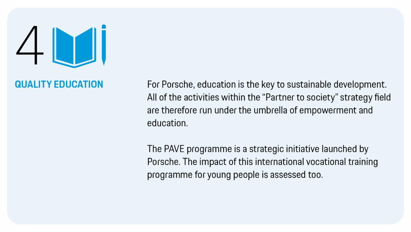 Porsche’s success is founded on the performance of its employees, who apply their skills and knowledge to the company. For this to be the case, it is important that needs-based development opportunities continue to be offered in the future too.